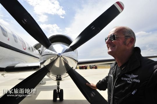 8月14日,在新疆克拉瑪依機(jī)場,百年靈噴氣機(jī)隊隊長雅克走下飛機(jī)。