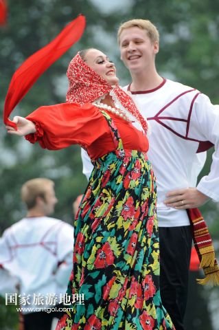 9月17日,俄羅斯彼特尼茨基國家模范藝術(shù)團成員在現(xiàn)場表演。