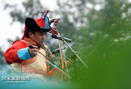 9月17日,蒙古國國家歌舞團成員在現(xiàn)場演奏馬頭琴。