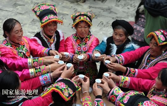 國家旅游地理 四川阿壩11月2日訊 11月2日,身著節(jié)日盛裝的四川省阿壩州汶川縣龍溪鄉(xiāng)村民們舉杯迎接羌?xì)v新年的到來。當(dāng)日,四川省阿壩州汶川縣龍溪鄉(xiāng)舉行傳統(tǒng)儀式迎接即將到來的羌?xì)v新年。今年的11月3日農(nóng)歷十月初一是羌?xì)v新年,這是羌族一年中最為隆重的“慶豐收、送祝福、祈平安”的節(jié)日,按民間習(xí)俗,過羌年時要還愿敬神,全寨人歡聚一堂,吃團(tuán)圓飯,共慶佳節(jié)。 /新華社發(fā)(何海洋 攝)