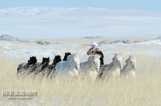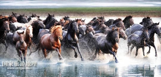 國家旅游地理 1月30日訊 一群蒙古馬在內(nèi)蒙古錫林郭勒盟阿巴嘎旗涉水奔馳(2013年7月20日攝)。風從草原吹過,留下多少傳說。在內(nèi)蒙古草原,駿馬與人為伴,縱橫馳騁,一直和諧相處到今天。在漫長的歷史長河中,駿馬陪伴著人們走過了滄桑歲月,留下了許多可歌可泣的動人傳說。