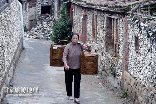 5月11日,在福建泉州豐澤區(qū)東海街道蟳埔社區(qū),一位蟳埔女挑著擔(dān)子走在村道上,村道兩旁是古老的蠔殼厝。宋元時期,這里是泉州“海上絲綢之路”的重要港口,遠(yuǎn)洋航船載著絲綢、茶葉、瓷器等貨物運(yùn)往世界各地,返程時壓船的海蠣殼成了村民們的建筑材料。