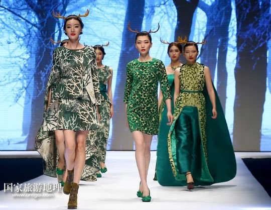 5月9日,模特在“2015杭州國(guó)際時(shí)尚周”開(kāi)幕式上展示英國(guó)寶萊達(dá)服裝設(shè)計(jì)公司主題為“樹(shù)靈派對(duì)”的時(shí)裝。
