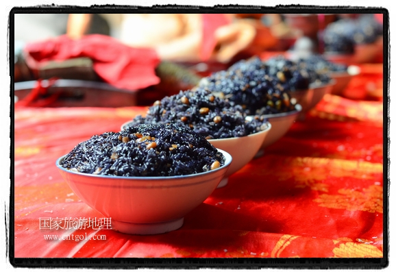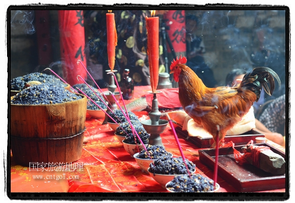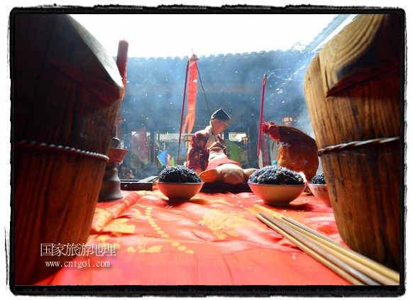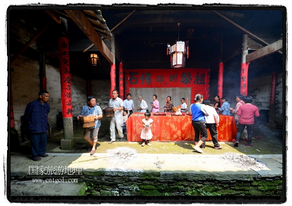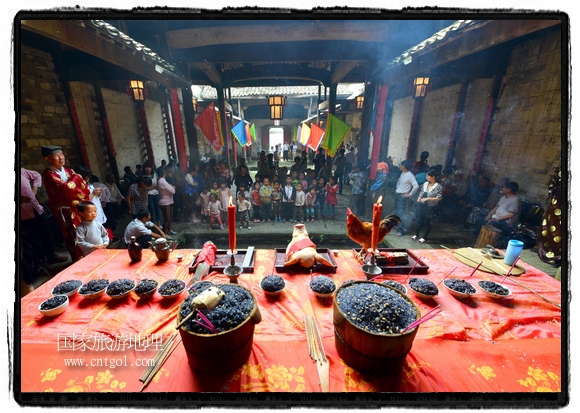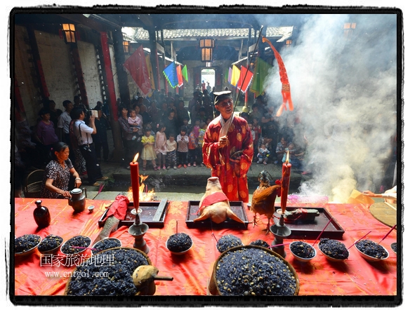 國家旅游地理 江西婺源(上饒)5月31日訊(特約記者王國紅 通訊員程新德攝影報道) “祭祀開始、鳴炮奏樂、祭拜、主持人講話、結束鳴炮”,5月25日,農歷四月初八,石佛村烏飯節(jié),村民將自家精心制作的烏飯端進祠堂祭祀。江西省婺源縣段莘鄉(xiāng)石佛村每年都要舉行烏飯祭祖活動,各家各戶將自家精心制作的烏飯端進祠堂……