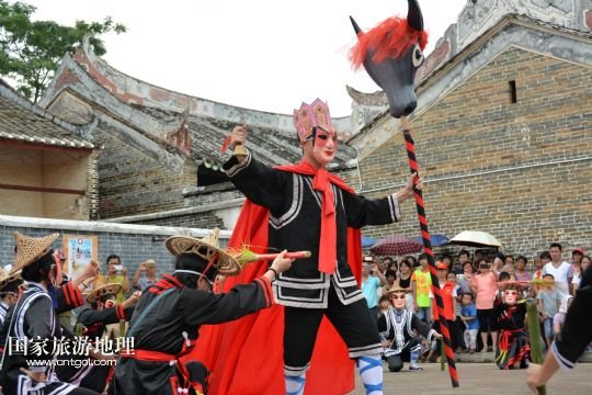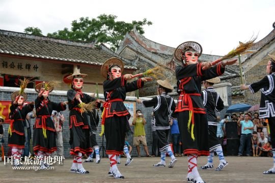 國(guó)家旅游地理 廣東云浮6月14日訊 6月13日,在廣東省郁南縣蘭寨古村,郁南縣民間藝人在表演國(guó)家級(jí)非遺郁南禾樓舞。