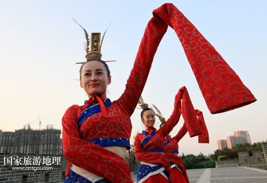 國家旅游地理 山東滕州6月14日訊 6月13日,在山東省滕州市老縣衙善國文化廣場,滕州柳琴劇團演員向市民展演柳琴戲。
