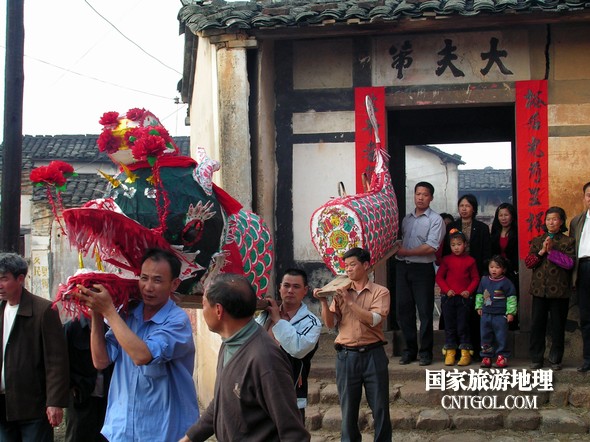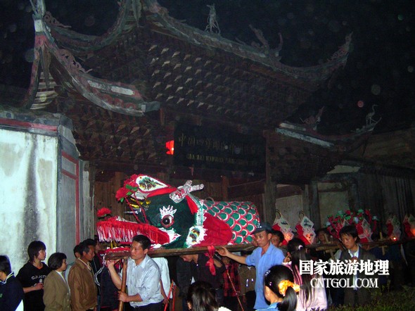 2月18日入夜,春雨霏霏。在光裕堂祖祠祭龍頭畢,鄒姓村民紛紛肩抬慶燈到祖祠接成220多米長的“龍”身。三聲銃響,游龍時而在村間慢悠游弋,時而在村道滯拔狂走,火紅的燭光伴著霏霏春雨,讓慶燈“龍”絢麗多姿,展示了“紙包火”的奇跡。 游“龍”所經之處,鞭炮和禮花聲不絕于耳,祈求五谷豐登、吉祥如意。街巷人山人海,熱鬧非凡,一派花燈游龍慶豐收狂歡鬧元宵盛況。 吸引了海內外游客及四鄰八鄉(xiāng)的萬余群眾紛紛前往觀看。